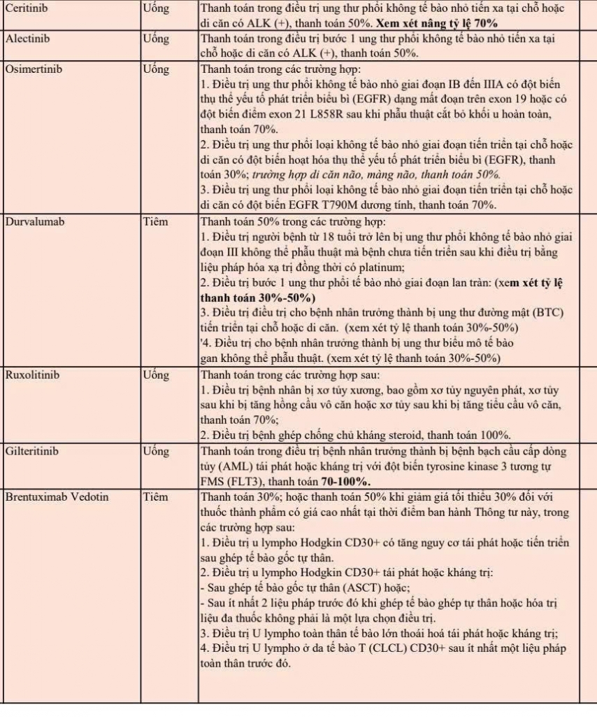 Thuốc điều trị ung thư mới trong danh mục thuốc bảo hiểm y tế
